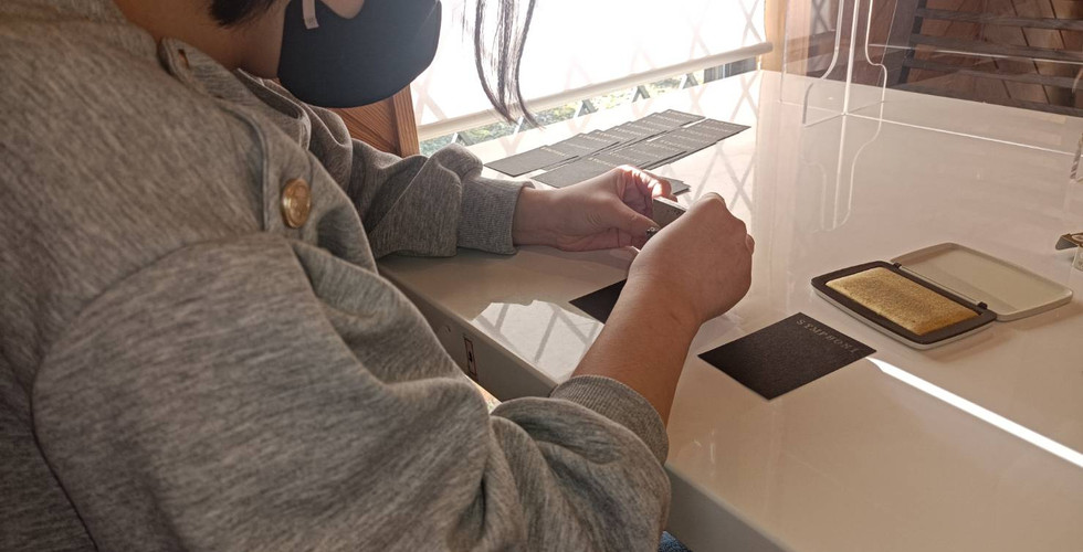 スタンプを押す場所を間違えないように手元を確認しながら作業を進められていました。